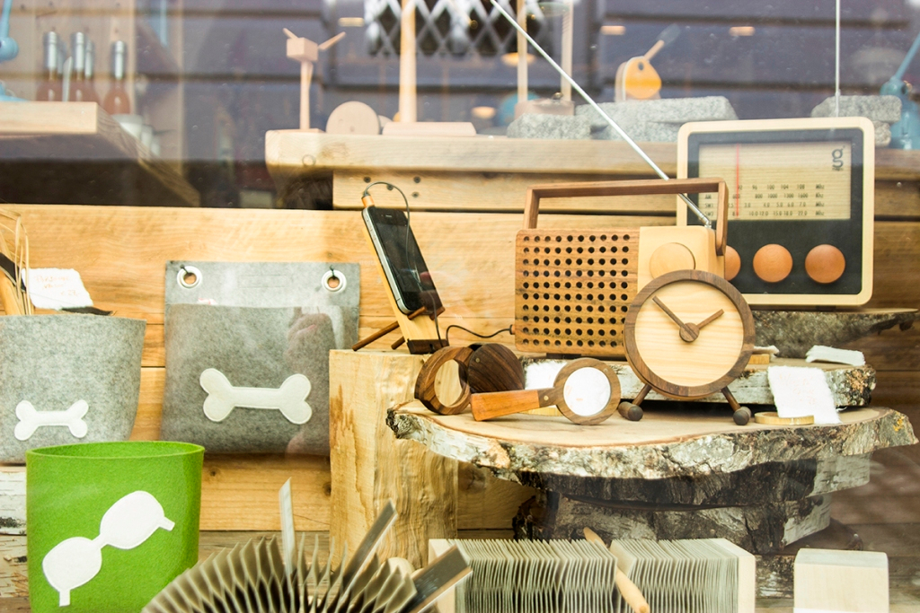 Erstaunlich, was man alles aus Holz basteln kann: Rasierer, Kugelschreiber, Grußkarten und sogar funktionstüchtige, handgefertigte Radios findet man im Living, dem kleinen Geschenkeladen in der Bischofstraße. Die kirchliche Adresse und die sphärischen Klänge aus den Lautsprechern schaffen den passenden Rahmen für sakrale Kunstwerke und die Madonna-verzierten mediterranen Delikatessen von Inpetto. Doch auch abseits des Religiösen will Besitzer Bernhard Reichhart „Schönes für die Seele“ anbieten: schicke Smartphonetaschen aus Filz, indische FairTrade-Ledertaschen im Papiersackerl-Look, gefühlvolle Skulpturen von Willow Tree. Für Maßanfertigungen vermittelt Reichhart hilfsbereit den Kontakt zu den Herstellern. Wer ein Geschenk für sich oder für die Liebsten sucht, für den bastelt der Besitzer kreative Verpackungen aus Holz und ungebleichtem Papier.