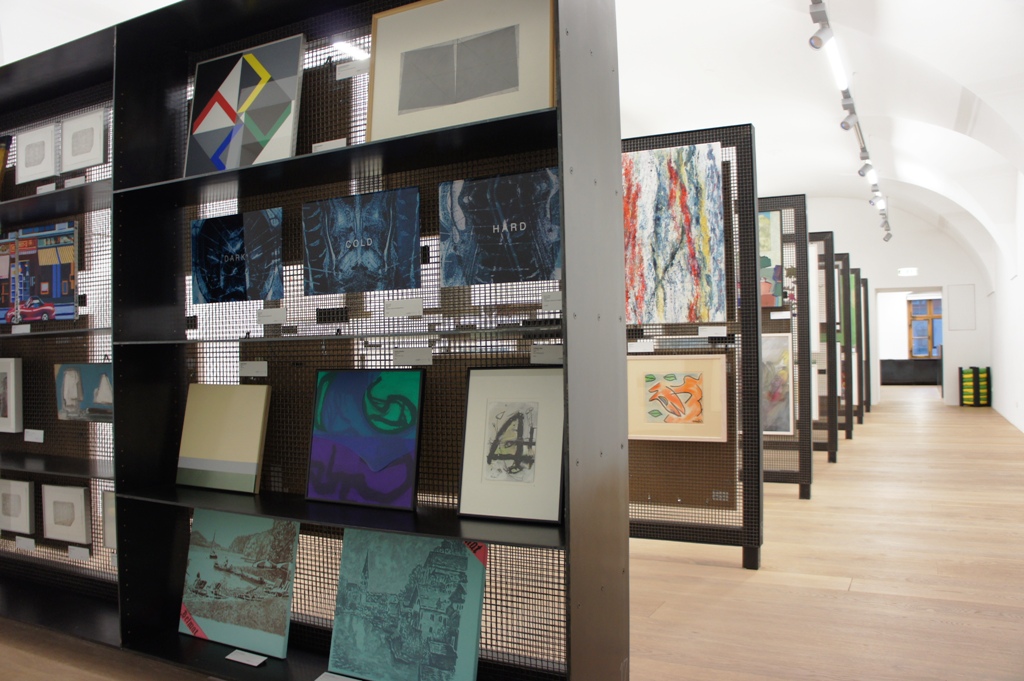 Die Kreidezeichnung mit dem dynamischen Skifahrer würde sich gut über der Couch machen, und die Ampelkühe bringen mit ihren kräftigen Lack- und Acrylfarben knallige Energie ins Büro: Die Artothek bietet rund 400 Werke zeitgenössischer Künstlerinnen und Künstler, um die eigenen vier Wänden und den Arbeitsplatz in eine mondäne Kunstgalerie zu verwandeln. Dicht gedrängt hängen die groß- und kleinformatigen Bilder in der Kunstsammlung im zweiten Stock des Ursulinenhofs. Etwa ein Drittel des Bestandes ist hier kostenlos zu sehen, der Rest ist entweder ausgeliehen oder im Depot, aber online vorbestellbar. Wie in einer Bibliothek kann man gegen Vorlage eines Lichtbildausweises bis zu vier Stücke ausleihen: Grafiken kosten 14 Euro für sechs Monate, Gemälde 56 Euro. Zudem gibt es Gutscheine in beliebiger Höhe als Geschenkidee für alle, die ihren Alltag mit moderner Kunst bereichern wollen.