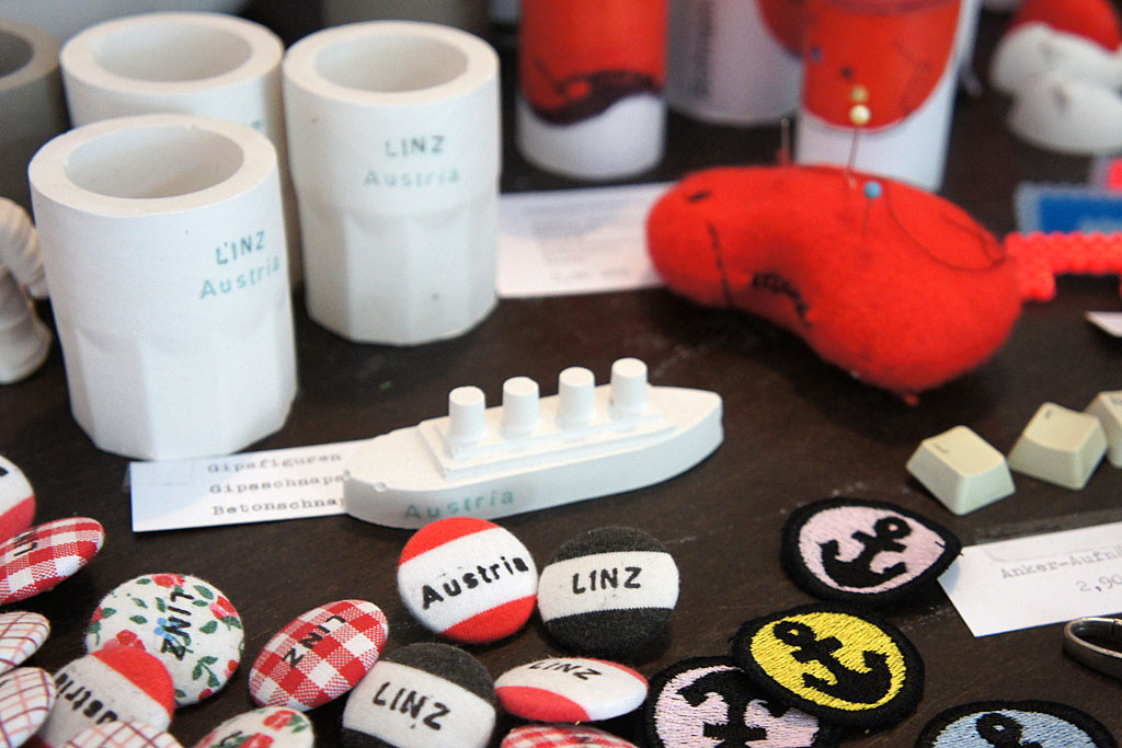 Jeder hat eine zweite Chance verdient: die Kreditkarte als Gitarrenplektron, der Bierkorken als Kühlschrankmagnet, das Leiberl als geflochtener Gürtel. Kreatives Recycling und ausgefallene, handgefertigte Souvenirs bestimmen das Sortiment im Sisi-Top schräg gegenüber des Lentos‚. In ihrer winzigen Werkstatt bedruckt Kathrina Becker Postkarten und Buttons, veredelt Bio-Baumwollleiberl mit Stickereien und schneidert Altkleider zu Polstern oder Röcken um. Wegen eines Jobs ist die Aachnerin in Linz gelandet und „mag jetzt nimmer weg“ aus ihrer „Stahlstadt“. Diese Liebe zur neuen Heimat spiegelt sich auch im Namen des Ladens, der an Kaiserin Elisabeth erinnert – „auch so eine Deutsche, die sich rübermachte“, scherzt Kathrina. Immer wieder blitzt das Konterfei der Monarchin zwischen den zusammengewürfelten Möbeln und den Retro-Vinylplatten hervor, die dem Geschäft das gemütliche Flair eines wuseligen WG-Wohnzimmers verleihen.