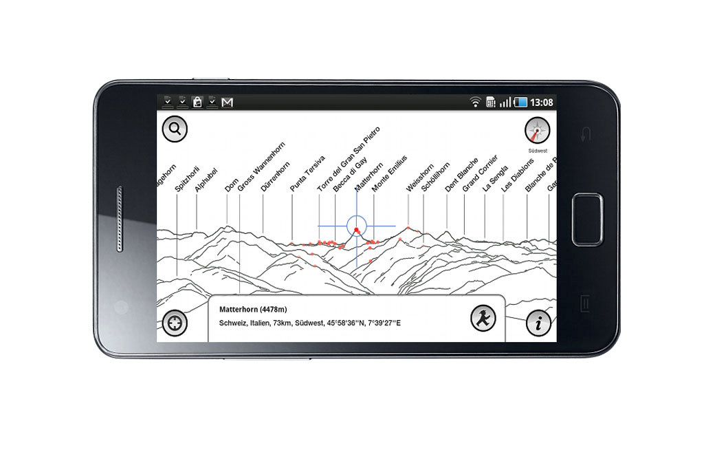 Keinen süßeren Duft kennt das Wandererherz als die klare Luft, die das soeben erreichte Gipfelkreuz umweht. Die fulminante Fernsicht auf die in allen Blautönen leuchtenden Berge verdrängt für kurze Zeit jeglichen Gedanken, bis sich eine nagende Frage im Oberstübchen festsetzt: Wie heißen denn gefälligst all die Gipfel ringsum? Wer jetzt keine Karte oder einen ortskundigen Bergfex zur Hand hat, dem helfen zahlreiche Handy-Apps bei der Benamsung der Anhöhen. Im Praxistest hat uns vor allem eine Anwendung überzeugt: Der PeakFinder arbeitet im gesamten Alpenraum dank GPS und Nasa-Höhenmodell punktgenau und erlaubt mit seinem schicken 360-Grad-Panorama in Schwarz-Weiß eine intuitive Orientierung. Zudem braucht die App im Gegensatz zur Konkurrenz keine Internetverbindung, um die Alpengipfel zu erkennen – ein klarer Pluspunkt in der unberührten Bergwelt fernab störender Sendemasten.