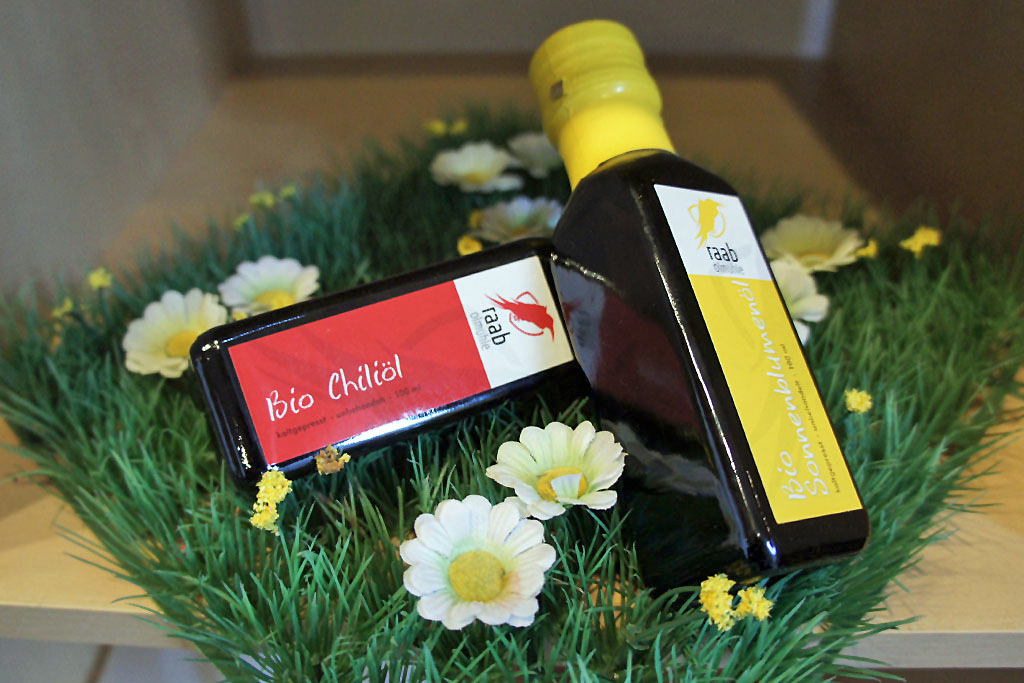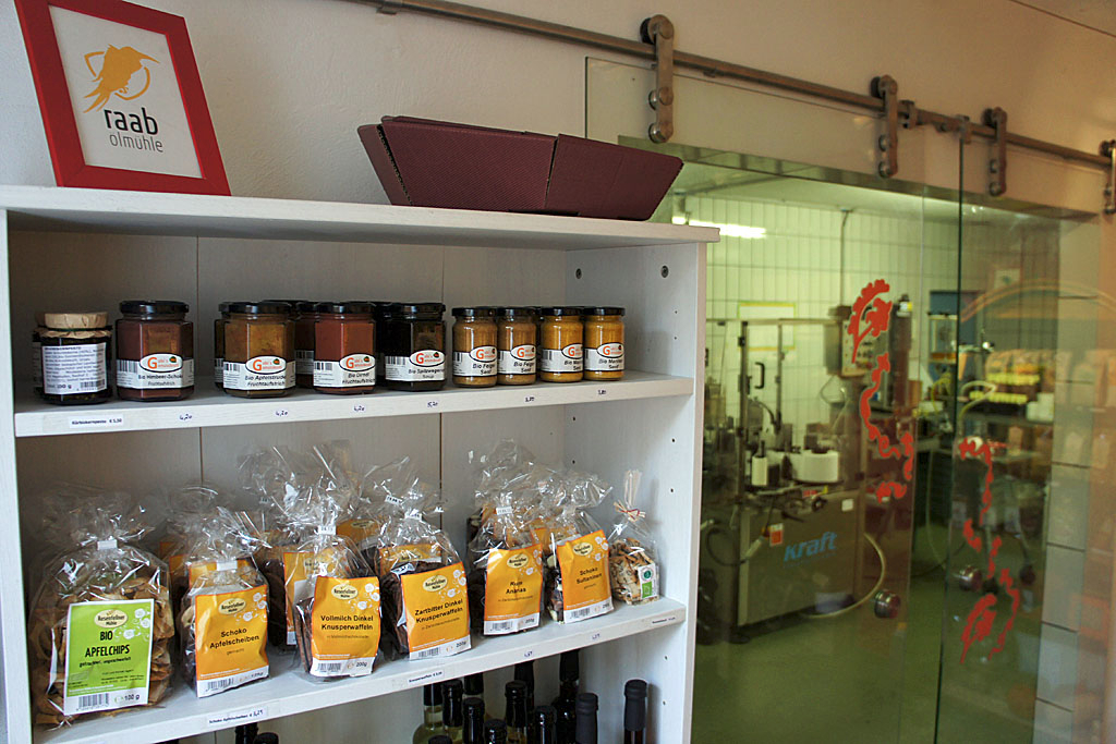 Ratternd gleitet das hölzerne Schiebetor zur Seite, um das tiefe Brummen der Maschinen und den nussigen Duft frisch gepresster Sonnenblumenkerne ins Freie zu entlassen. „Der Jahreszeit entsprechend ist unser Lager derzeit ziemlich voll“, deutet Thomas Raab auf die meterhoch gestapelten Säcke. „Aber eigentlich pressen wir das ganze Jahr über, damit die sensiblen Öle immer frisch zu den Kunden kommen.“ Seit 2005 betreibt die Familie ihre eigene Mühle, anfangs um Biotreibstoff für den Biohof Achleitner herzustellen, bis sich hochwertige Biospeiseöle als rentabler herausgestellt haben. „Die kleinstrukturierte Landwirtschaft in Österreich muss mehr aus jedem Hektar herausholen“, erklärt Raab, warum er sich auf Ölsaaten wie Hanf oder Färberdistel spezialisiert hat. Was er an Rohstoffen nicht selber ernten kann, bezieht er soweit als möglich aus der Region. Verkosten kann man die zehn kaltgepressten Ölsorten unter anderem im Hofladen, wo zudem fruchtige Marmeladen, windgetrocknete Nudeln oder Hausruckviertler Bio-Cider von befreundeten Betrieben locken.