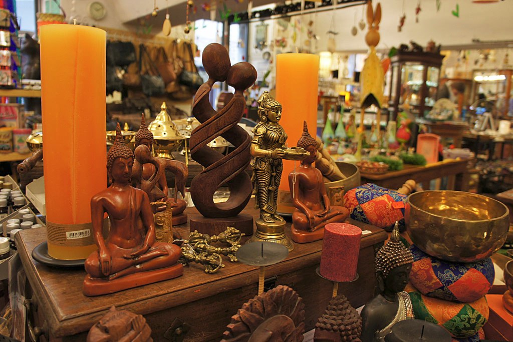 Regenwaldbunte Gekos kraxeln über die Gewölbedecke, „genau wie damals in Indonesien“, lacht Claudia Johnson. Aus Liebe zum Fernen Osten, seinem Sprachenmix und seinen Menschen reist sie immer wieder nach Südostasien und hat dort in den vergangenen Jahrzehnten ein dichtes Netzwerk von kleinen Betrieben aufgebaut, die ihr Geschäft in der Nähe des Linzer Hauptplatzes mit schrägen, eleganten oder verträumten Geschenksartikeln, Schmuck- und Kleidungsstücken beliefern. „Das Hauptkriterium ist, dass sie sozial und fair wirtschaften“, erklärt Johnson die Auswahl in ihrem Laden. Viele Stücke hat sie selbst entworfen und direkt an der Rohstoffquelle fertigen lassen, „damit den Leuten vor Ort mehr Geld bleibt und sie ihre Werkstätten entwickeln können“: Die farbenfrohen Kleider und Bambus-Blusen zum Beispiel näht eine kleine Schneiderei in Indonesien, und der symbolreiche Schmuck mit leuchtenden Halbedelsteinen entsteht in einer Manufaktur in der nepalesischen Hauptstadt Kathmandu. „Fairer Handel ist für alle gut“, beschreibt Johnson ihr Credo. „Für mich, für meine Lieferanten und für meine Kunden.“