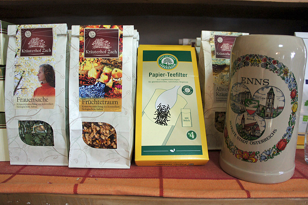Kaum tritt man durch die offene Glastür, empfängt einen der aromatische Duft von jungen Kräuterkistln und das herzhafte Lachen von Lucia Lössl, die einer Kundin vom saftigen Gemüse der nahen Felder vorschwärmt. „Wenn du gut essen willst, musst du wissen, was grad bei uns reif ist“, meint die Namensgeberin von Lucias Naturladen im Ennser Vorort Lorch. Regelmäßig fährt sie zu den umliegenden Höfen und holt knackiges Gemüse, frisch geerntetes Obst oder selbstgemachte Nudeln. „Meine Überzeugung ist, dass besser einer für alle fährt, bevor jeder einzeln umanandkurvt“, erklärt Lössl. Vor sechs Jahren hat sie ihren Kindheitstraum vom eigenen „Kaufmannsladen“ erfüllt, „wo es gute und schöne Dinge gibt“. Dazu zählen für Lössl nicht nur regionale Bio-Lebensmittel, sondern auch fair gehandelte Mode, Schafmilchseifen aus Sierning, Klangschalen und eine Unzahl von kreativen Geschenksideen. „Besonders beliebt sind unsere Geschenkskörbe mit Schmankerln aus der Umgebung“, sagt Lössl. „Da wissen die Beschenkten genau, wo’s herkommt.“